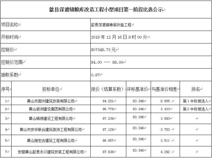 歙县深渡镇粮库改造工程小型项目第一阶段比选公示