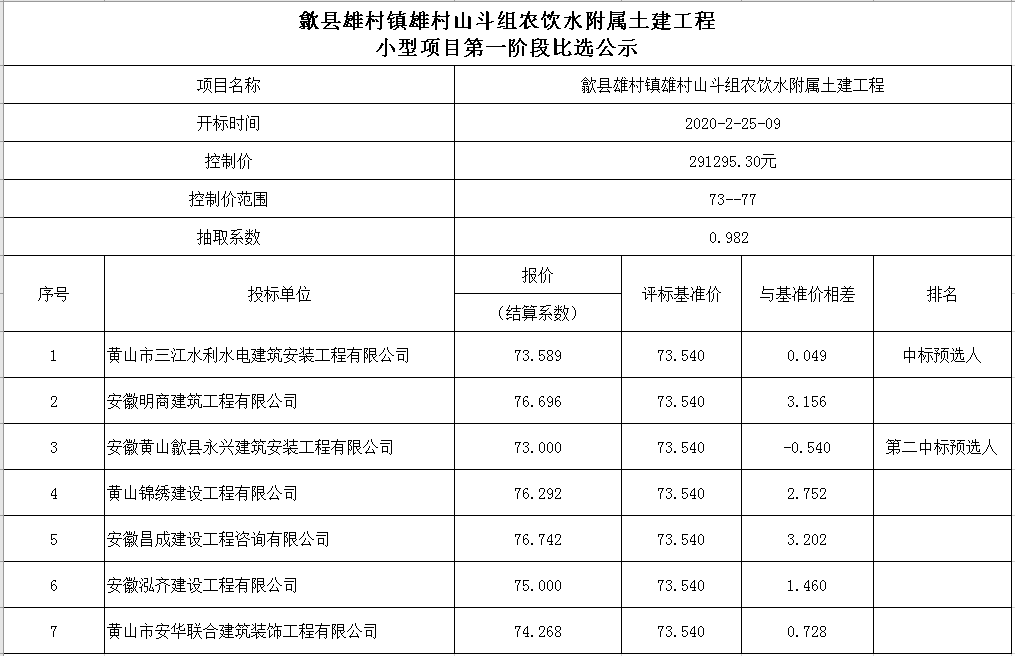 歙县雄村镇雄村山斗组农饮水附属土建工程小型项目第一阶段比选公示