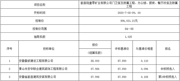 歙县陆壹零矿业有限公司门卫室及附属工程、办公楼、厨房、餐厅改造及附属工程 小型项目第一阶段比选公示
