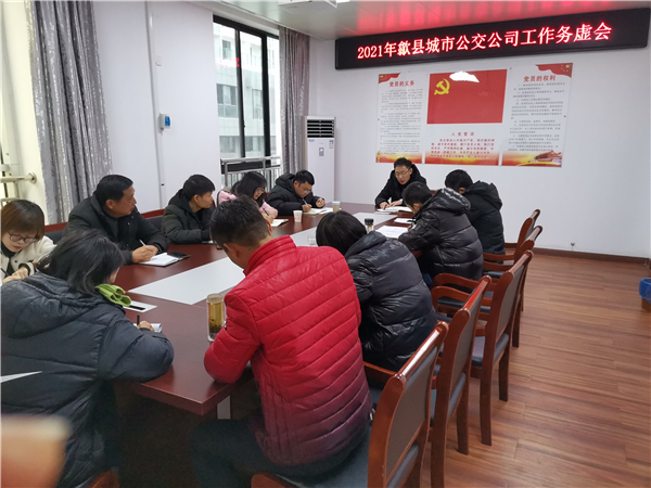 1月5日上午,歙县城市公交公司在公司二楼会议室召开了2021年务虚工作会议。公司执行董事、经理张华主持会议,全体管理人员参加会议。