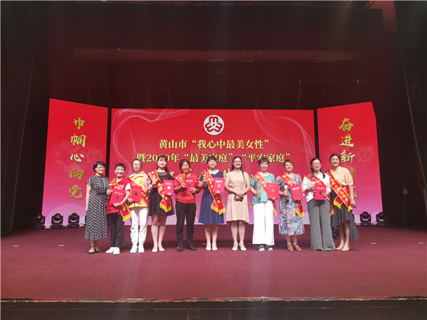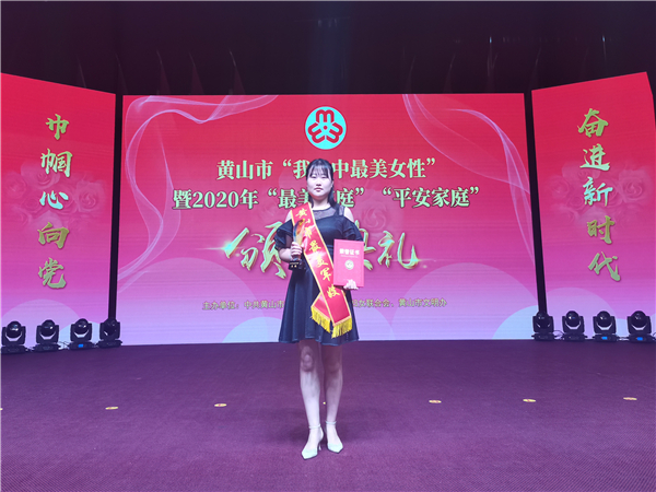 7月28日下午,市委宣传部、市妇联、市文明办联合举办的“巾帼心向党、奋进新时代”——黄山市“我心中最美女性”暨2020年“最美家庭”“平安家庭”颁奖典礼在市委市政府会堂举行。市直有关单位负责同志和区县妇联、获奖代表、市直单位女性代表、屯溪区社区代表及我市部分赴湖北武汉参加抗疫的医护人员等300余人参加活动。歙县自来水有限公司员工吴艳被授予黄山市“最美军嫂”荣誉称号。