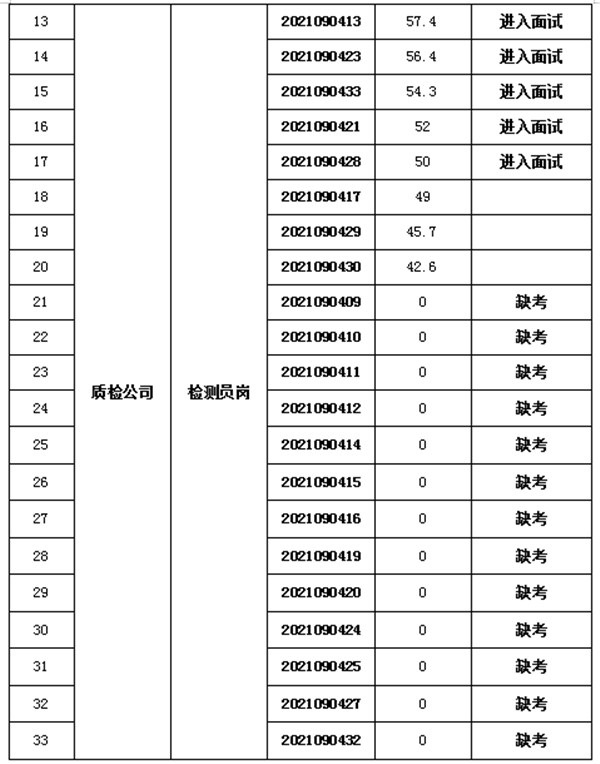 根据《黄山徽投集团招聘员工考试公告》,笔试工作已于2021年9月4日上午结束,现将笔试成绩及进入面试人员名单公布如下: